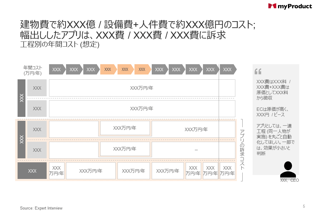 近年、AI / IoT / ロボティクスなど技術力の高い企業が、課題が山積する物流自動化の領域への参入を検討するケースが増加。今回は、電子機器メーカーと共同で、業界トレンド / 現場・経営課題を分析し、コストメリットの大きい自動化ソリューション案を幅出し。導出した40以上の案を、専門家とのワークショップの中で評価すると同時に、協業先もソーシング。プロジェクトはPoCフェーズへ。