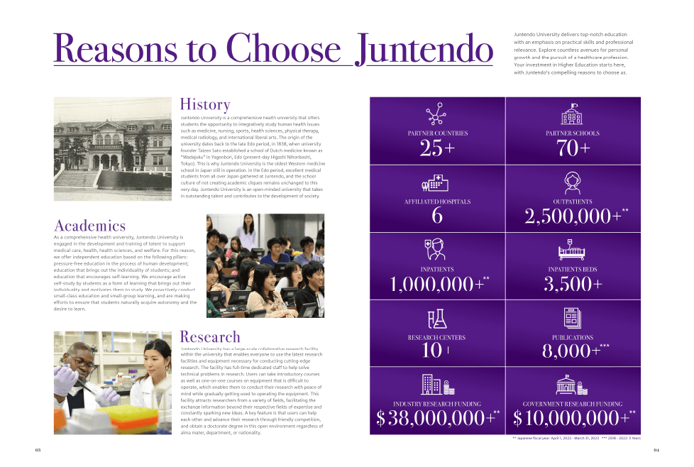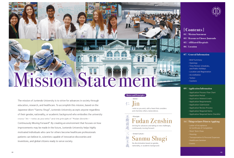 順天堂大学医学部の臨床観察募集ツールを制作。テキストベースだった前年資料に比べ、画像やアイコンを多数掲載し、ビジュアル面での直感的な伝わり易さを改善。誌面内に検索機能も追加し、必要情報が瞬時に入手できるように読み手視点で操作フローも再構築。ビジュアル面・操作面双方の改善がクライアントから高評価。