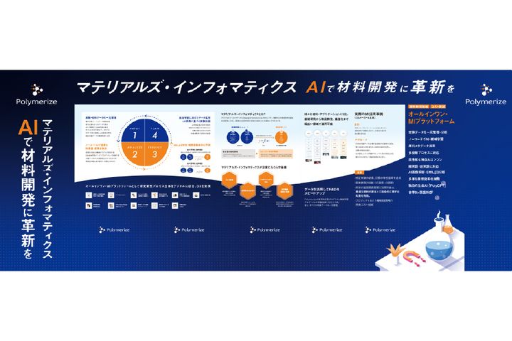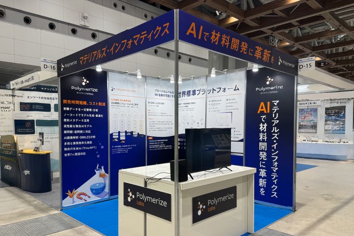 材料研究のデータ管理やAI最適化を提供する「Polymerize」向けに、展示会用ブース / 壁面パネルデザインを通じた、ビジュアルアイデンティティ (VI) 確立を支援。外資系スタートアップとしてVIガイドラインが確立されていなかった同社では、日本市場参入において競合との差別化が難しく、展示会における認知度・訴求力に課題。専門的で複雑なワークフローを視覚的に整理することで、製品情報が短時間で直感的にインプットされ易く、継続的にも使用できるデザインアセットを提案。議論を重ねたVIを継続的に使用することで、展示会での認知の連続性を担保すると同時に、来場者からの企業の信頼感 / ブランドイメージの向上を通じて、見込顧客 (研究室 / 学識者) との接点を拡大。