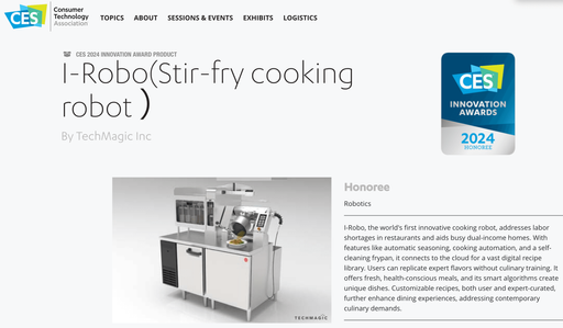 調理ロボットのパイオニアである「TechMagic株式会社」が開発する自動炒め調理ロボット「I-Robo」のプロダクトデザインを実施。設計者と協業しながら、当社はスケッチからCG制作 / 製品デザイン監修を担当。ラスベガスで開催される世界最大級の展示会CES (Consumer Electronics Show) において、CES Innovation Award 2024を受賞。