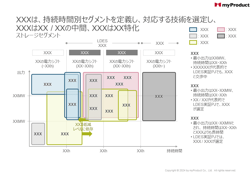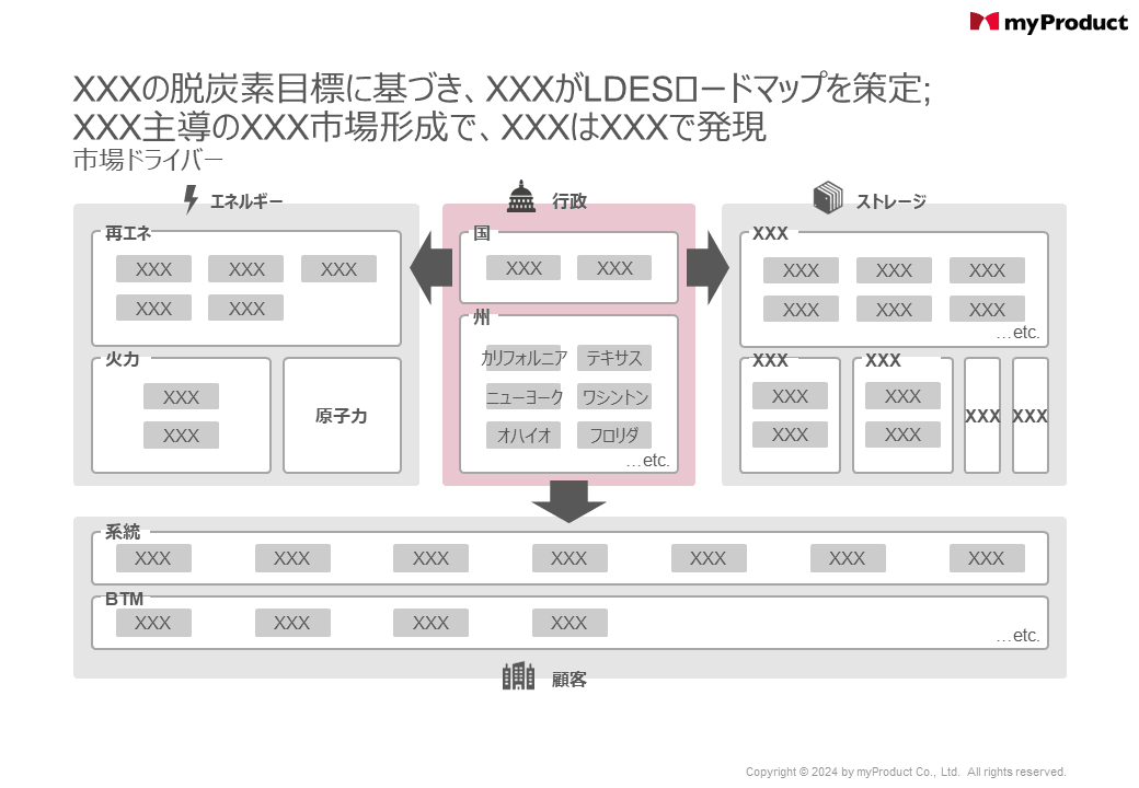 再エネ普及によるグリッドの不安定化が予見される中、市場はリチウムイオン一辺倒から、より長い持続時間を有する多様な蓄電池ポートフォリオ構築に移行中。重力 / メカニカル / 蓄熱 / 蓄電池など、構成される技術の幅出しを行い、行政が有望視する技術を特定すると同時に、その背後にある国家単位の意図を、関係者へのヒアリングで紐解き。また、米国の州別にLDES適合性も評価し、先行して市場が立ち上がる先進15州を特定。