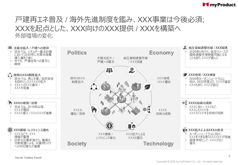 経済産業省は「第7次エネルギー基本計画」において、2040年に太陽光発電量を現在の約3倍に増加させる目標を立案。平地が限定的な日本では、ペロブスカイト太陽電池への期待に加え、新築建物への太陽光パネル設置の義務化など、政策を通じた誘導も必要。本検討では、草の根単位での太陽光発電の普及促進に資するとされる、欧州 / 米国発の再エネ「コミュニティモデル」について、業界有識者へのヒアリングも含めて具体的な事例を収集・分析。利害調整先の集約化や、市民を含めた参画プレイヤーへ還元される経済 / 社会価値について可視化し、日本への適用について資源エネルギー庁も交えて討議し、ロードマップを策定。今後、実証実験先の探索フェーズへ。